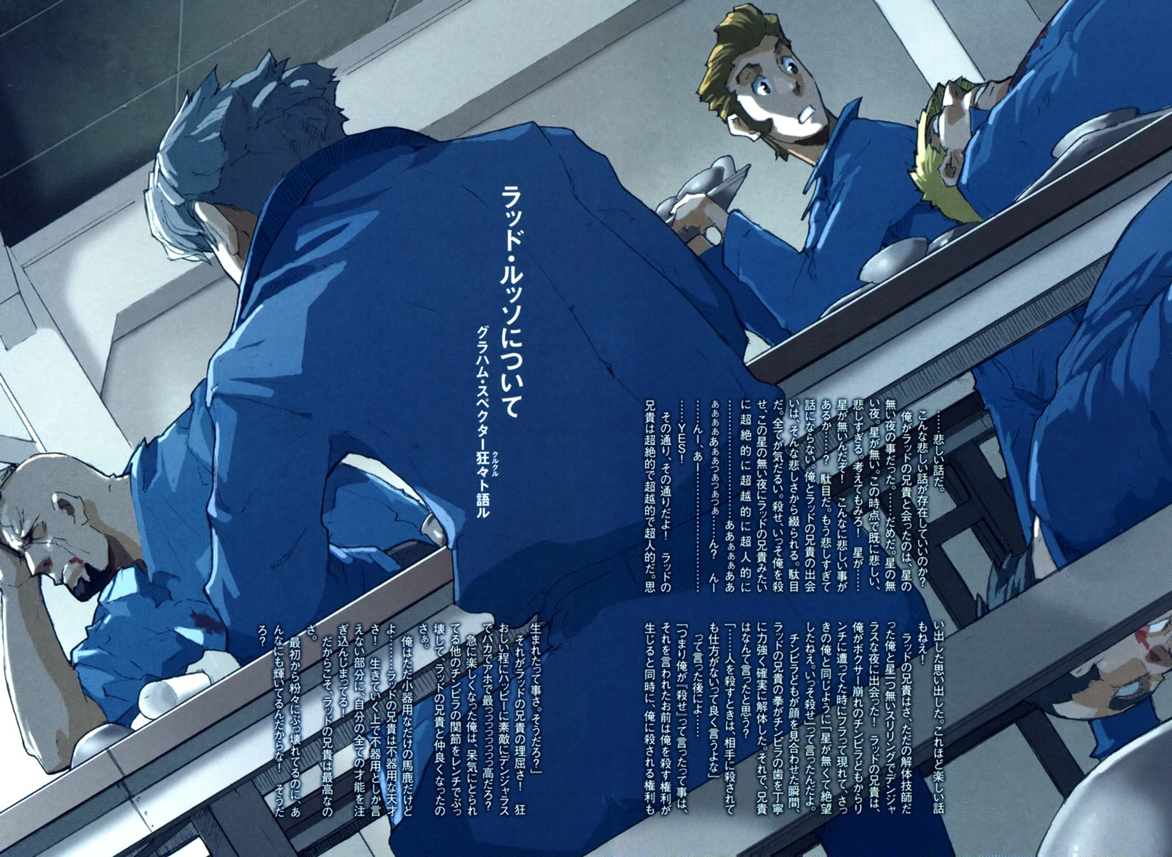Quand Isaac élève la voix, les gardes lancent un avertissement et les trois se taisent une fois de plus. Le comportement d'Isaac amène Firo à demander à Ladd pourquoi il le tolère, car Isaac est le genre de personne que Ladd déteste généralement. Souriant, Ladd fait remarquer que le cerveau d’Isaac a quelque chose de tellement clair qu’il n’y a pas de quoi en vouloir. Isaac, qui comprend mal la situation, remercie Ladd d'être un brave homme.