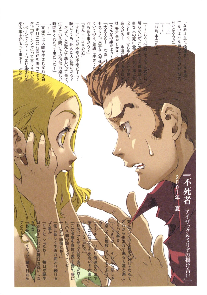 Ainsi, au lieu de simplement regarder les gens mourir, lui et Miria devraient profiter de la vie avec les nouvelles personnes qui viennent dans le monde. Miria comprend: dans ce cas, leur tristesse et leur bonheur s'annulent mutuellement. Isaac déclare que c'est la raison pour laquelle ils doivent profiter de chaque nouvelle rencontre encore plus. Les deux décident d'enfiler 108 cloches sur leurs vêtements (54 chacun) pour montrer leur détermination.