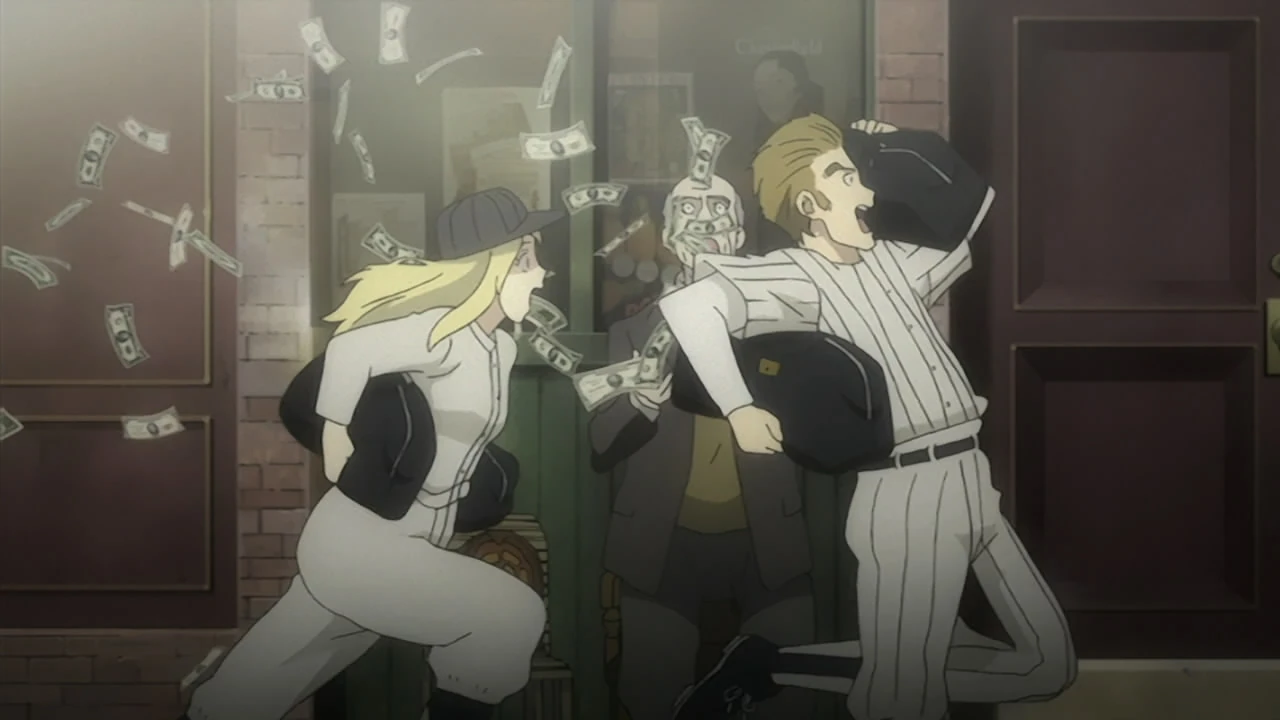 La jeune femme répond tranquillement que pour quelqu'un comme elle, terrifiée par ses propres péchés, ce doit être sans espoir par rapport à des gens aussi courageux qu'eux. Isaac et Miria la rassurent ils peuvent tous être «mauvais» ensemble. Ayant regagné son attention Miria gazouille qu'ils peuvent aussi bien appeler cela une remise à zéro puisque la femme leur a sauvé la vie. Isaac est d'accord, soulignant que peu importe le nombre de mauvaises actions d'une mauvaise personne, s'ils font même une seule bonne action, comme Capone, les gens commenceront à penser que "peut-être ce sont en fait des bons gars". Et maintenant que la femme les a sauvés, elle deviendra populaire et vivra quelque part au chaud, se liera d'amitié avec des boxeurs et rencontrera un «gars gonflé».
