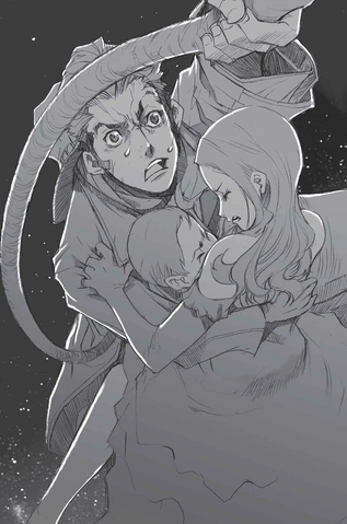 D'instinct, Isaac porte la main à son oreille et Miria pousse un cri d'inquiétude seulement pour qu'Isaac ne baisse sa main avec confusion, la douleur est déjà partie. Miria est étonnée de voir que la blessure en elle-même a disparue.
