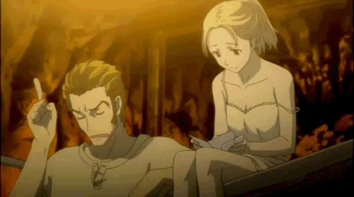 Isaac claque soudainement des doigts en se souvenant des évènements de la veille. Le bruit attire aussitôt l'attention de toute la pièce sur eux. Il rassure vivement Firo que lui et Miria ont déjà sauvé sa bien aimé Ennis. Firo se détend et dans un soulagement visible il demande: