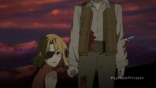 Avec ses bras autour de Jacuzzi, Nice aperçoit une certaine silhouette rouge se dressant face au soleil levant. Jacuzzi dit à Nice de ne jamais pleurer car il a toujours pleuré pour elle et ne supporte pas de la regarder pleurer. Il court vers le Rail Tracer avant qu'elle ne puisse l'arrêter et elle réalise qu'il a pris deux des grenades attachées autour de sa taille. Elle crie son nom et une énorme explosion secoue les voitures, emportant ses lunettes.