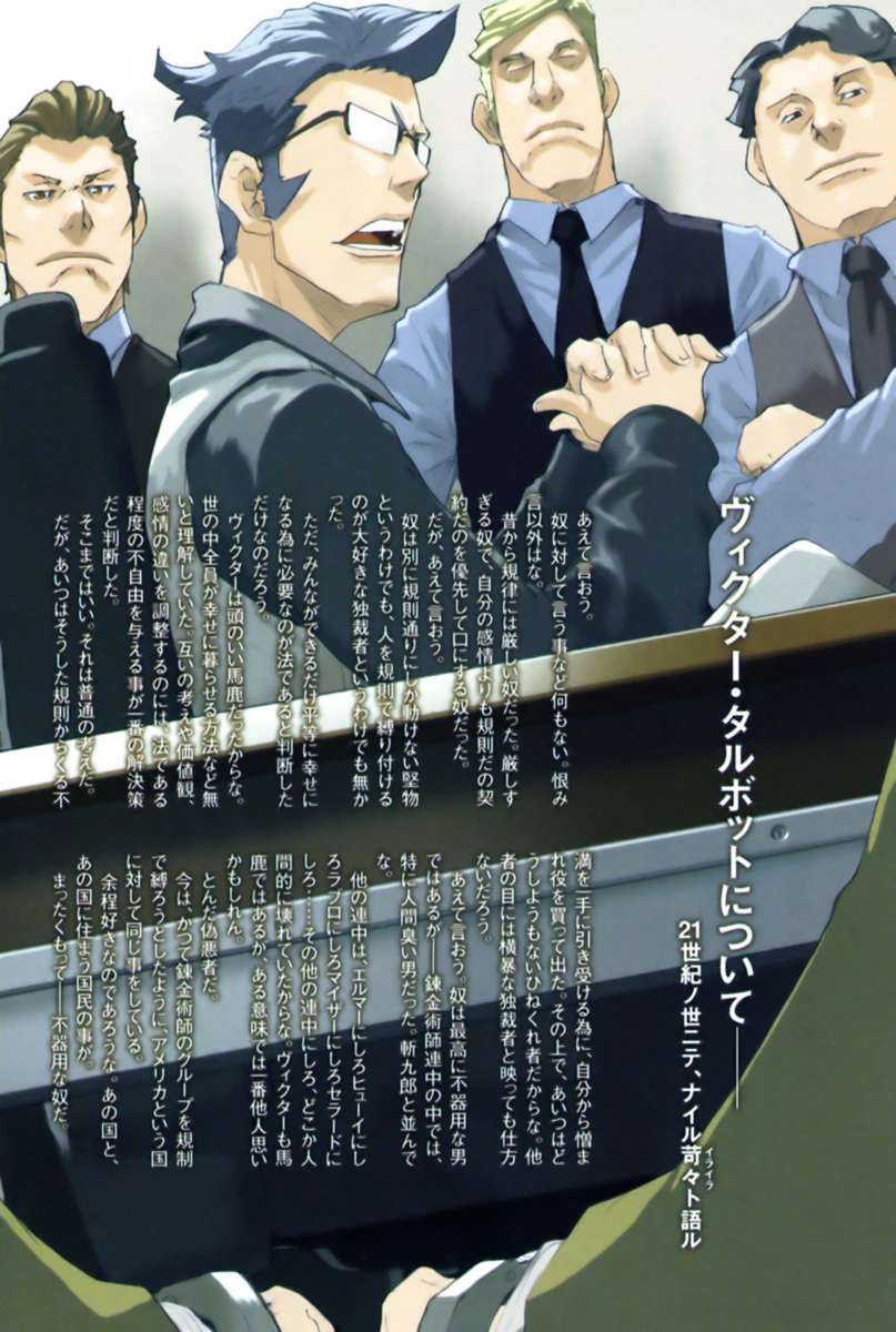 Dans le prologue du roman 1934: Prison Episode Alice in Jails, Nile déclare que Victor n'est pas naturellement le type de personne à suivre les règles. Il croit fermement que la loi est nécessaire pour le plus grand bien et qu'elle doit être rigoureusement appliquée. Même au prix de la liberté.