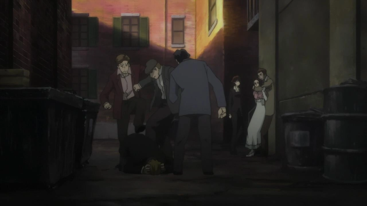 In 1930, Ennis walks down the streets of Little Italy in search of Dallas and his companions. Glancing at the alley, she spots Scott holding Miria against her will by the far back wall. Ennis hesitates, and enters the alley to intervene. She finds Dallas, James, and their third friend kicking a downed Isaac repeatedly once she turns the corner.