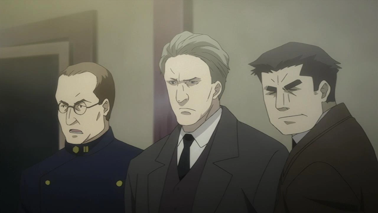 The opening scene at the police department is actually an adaptation of a conversation between Bill Sullivan, Donald Brown, and Edward Noah, in which Bill and Donald brief Edward on Isaac and Miria like they do the police force in the anime. Edward's role in the 1930 timeline is cut entirely from the anime, which reduces him to a cameo bit in episode two.