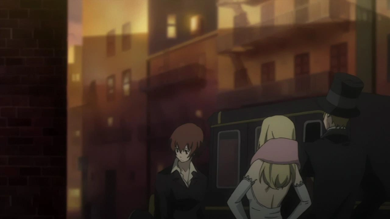 In 1931, Jacuzzi's gang regroups in the next car. Nice reports to Jacuzzi that she saw two Lemures carrying machine guns in the dining car, but Isaac, Miria, Czeslaw Meyer, Mary, and Natalie Beriam are all missing. Jacuzzi is visibly worried, and she tries to reassure him that they were probably just taken somewhere else - only to be taken aback when Jacuzzi says that they have to find their missing friends. He orders Nice and Nick to climb over the roof of the dining car to its other side, while Donny sticks with him. Then, after warning Nice to be careful, he kisses her and leaves with Donny back through the second class car. Nice, blushing visibly, watches him go.