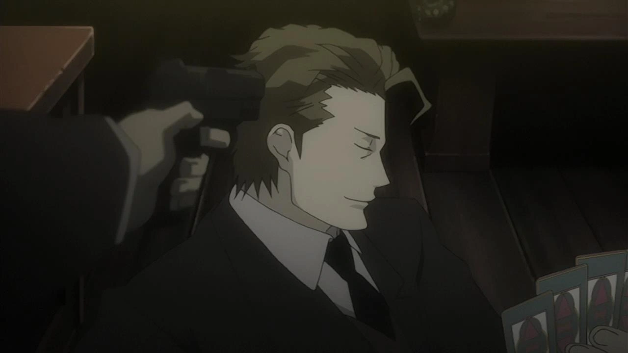 In 1932, Gustavo and his Runorata subordinates bust into the Coraggioso and find Luck, Berga, and Keith playing poker. Gustavo is gobsmacked to see Luck, whom the Runoratas had gunned down in a bookstore some days prior, and rationalizes that Luck must have survived by using a body double. Luck closes his eyes and smirks at that, and Keith uses the opportunity to pluck a card from Luck's hand and add it to his own. Berga tries to do the same to Keith's hand, but Keith notices and glares him down.