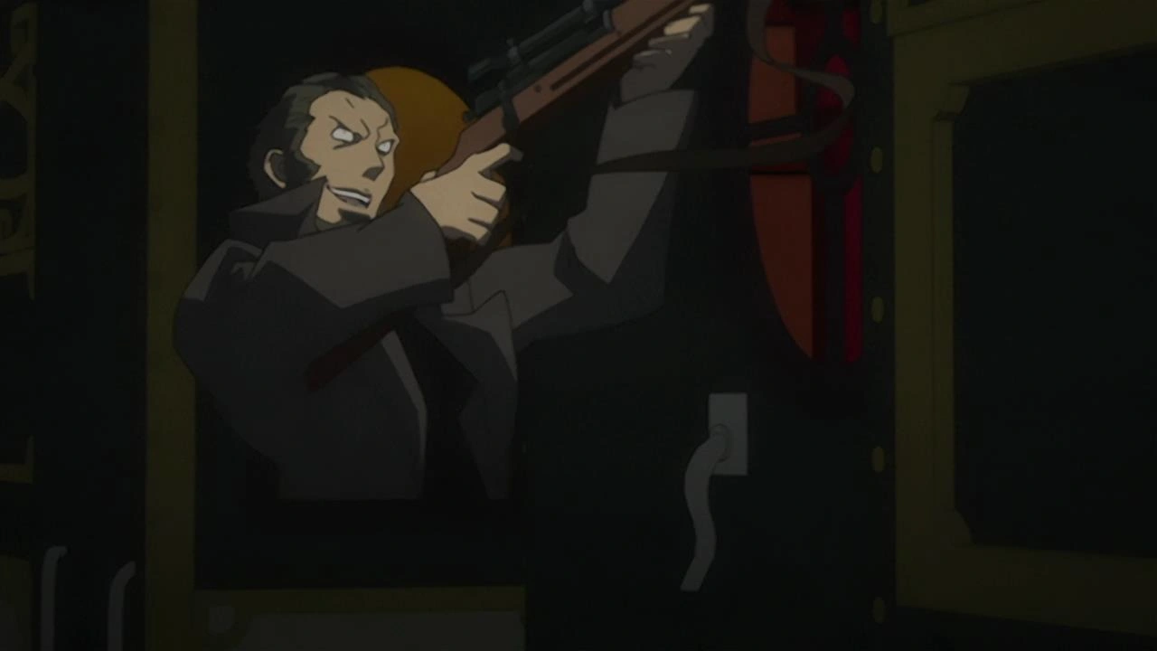 Czes offers Ladd two hundred thousand dollars in the novels, ten times more than the twenty thousand he offers Ladd in the anime. Who is present during their exchange in the novels like he is in the anime (though the anime cuts his few speaking lines), but the third White Suit in the anime is not nearby in the novels - and Lua is. The anime also doesn't have Ladd point out to Czes that he has a man currently demanding a million dollars from the railroad company as a reason for why Czes' monetary offer holds no sway.