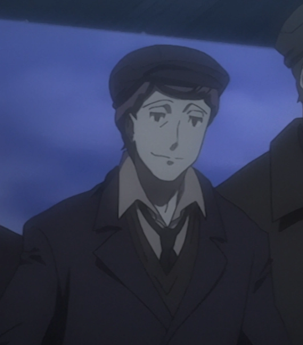 Elmer observing Maiza at the train station is not adapted from any scene in the novel and is thus anime-original. It is, however, plausible, as he was also a passenger aboard the Flying Pussyfoot.