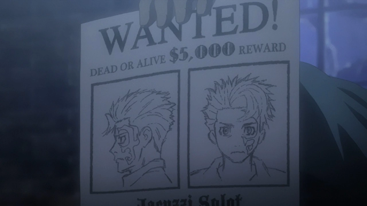 Graham mulls over the tattoo for a moment, and then dashes over to sort through a mess of papers on a nearby table until he finds the Russo Family's wanted poster for Jacuzzi Splot. The poster prominently boasts a bounty reward of five thousand dollars for catching Jacuzzi, and when Graham holds it up, the follower confirms that the Jacuzzi is the man he saw.