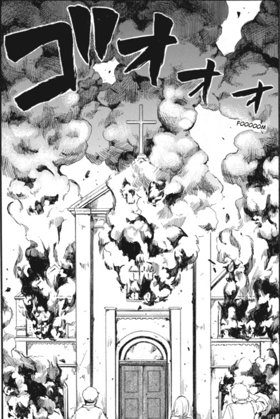 He finally arrives at his church, and is horrified to see that it is ablaze.