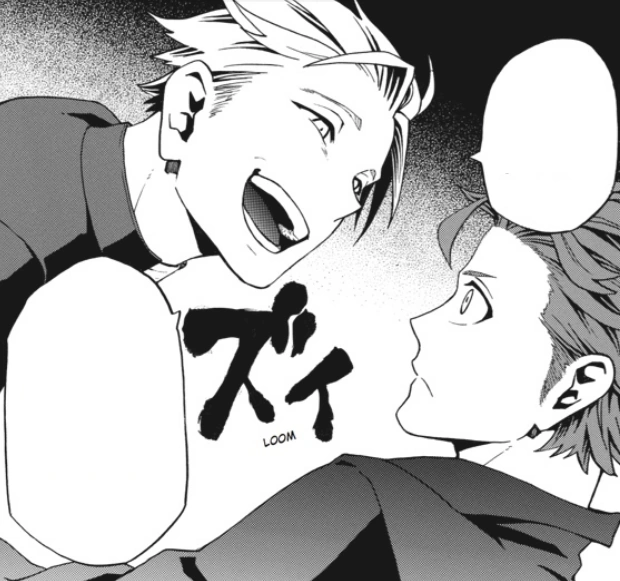 Firo stares at him, dumbstruck. He splutters that he "didn't think of doing that" as Maiza drags him away to get him treated. Ronny huffs, smiles, and folds his arms. He wonders to himself what kind of gangster Firo will become as he watches Lia and others come over to talk to Firo.