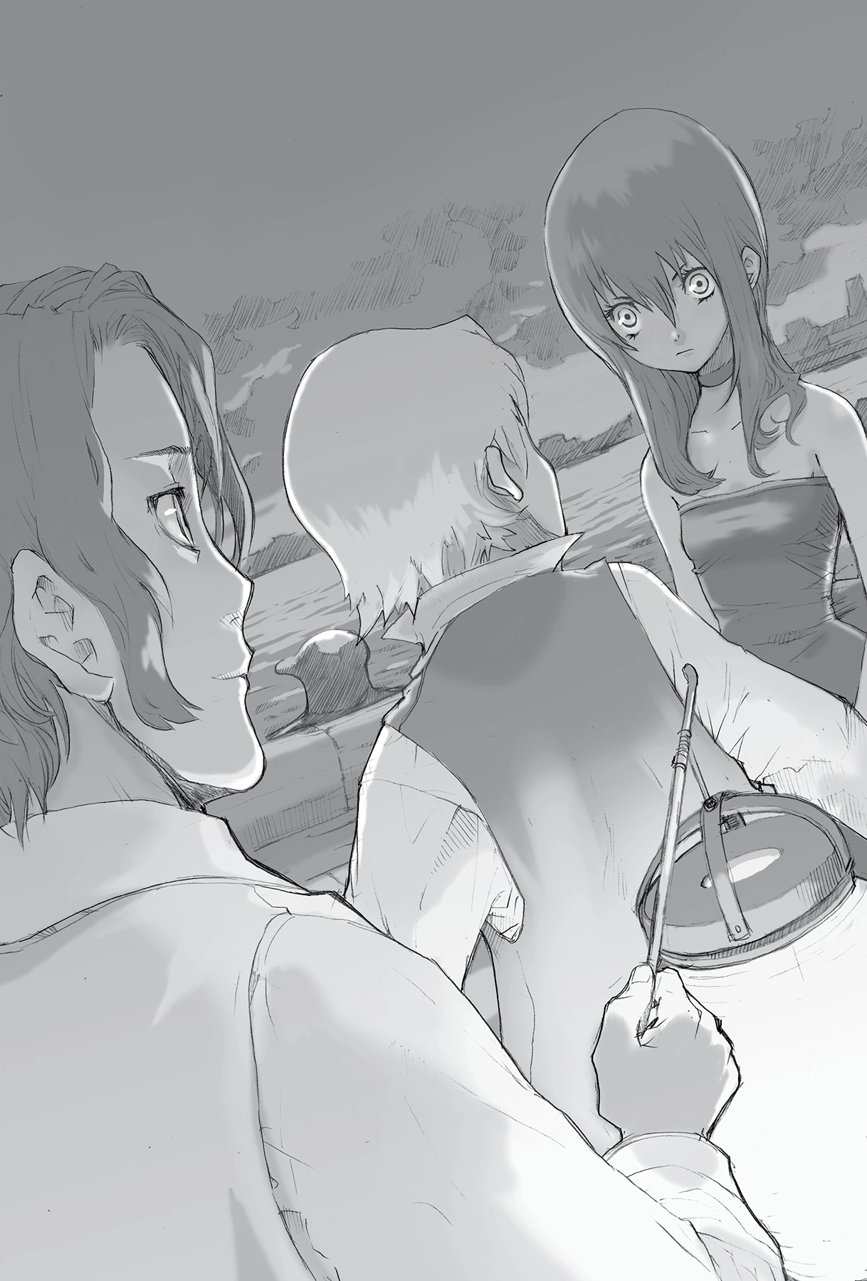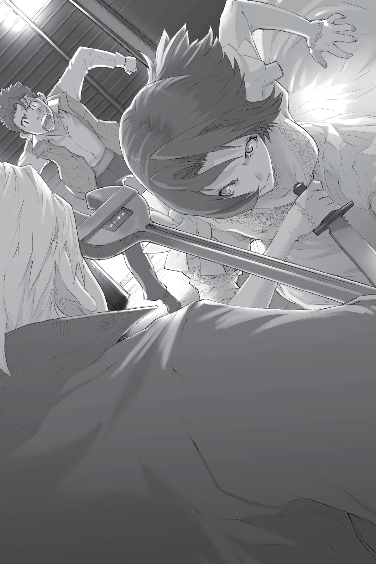 An explosion blows a hole in a section of the factory wall, heralding the arrival of Nice and a good number of Jacuzzi's gang despite Graham's order for Jacuzzi to come alone. Jacuzzi notices a stranger's voice amidst those of his friends, and the gang members soon single out a certain redhead—Claire—standing by the wall. Recognizing him from his eyes alone, Chané charges toward him and slices her knife toward his neck—only for a storm of conflicting emotions to hold her back. Much to her fear, Claire asks for her hand in marriage with full sincerity.