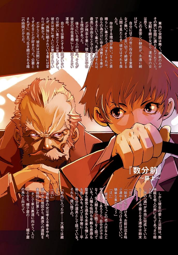 Ennis, Firo, and Czes later meet up with Firo's photographer friend, and the photographer returns to their hotel so he can prepare his camera. The three go off on their own to stroll around Kyoto, and since the three of them are well-versed in Japanese they do not need a translator to help them get around. As they walk, Firo apologizes and admits that all this time he's been scared of Szilard's memories, and that he had been confident he could protect them without resorting to that damn knowledge. He regrets not using the memories earlier—if he had, he feels like things would have been solved much quicker. At any rate, things will be different now.