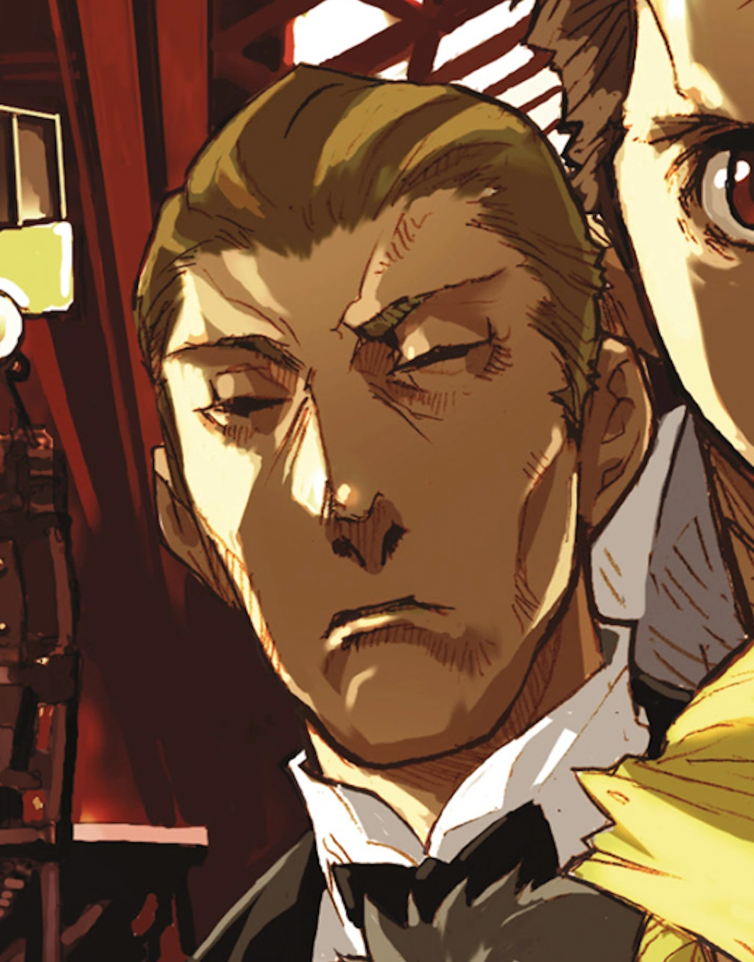 In the corridor, he mulls over Nice's statement that they saw a corpse in a freight room on the way back from the conductors' compartment. It occurs to him that his conductor comrade should have killed her if she really did visit the rear car; troubled, he reenters the room and asks Nice if there was anything abnormal about the conductors' compartment. Nice recalls that they found both conductors dead, and that the gruesome condition of the corpses was what finally convinced her that the Rail Tracer is real.
