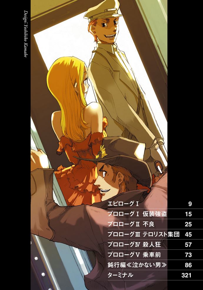 Concluding the train is like a battlefield where three factions (the Black Suits/Lemures; the White Suits/Ladd's men; Jacuzzi's gang) all battle for dominance, Isaac launches into a pep talk: he urges Jacuzzi to 'upset the balance' and take over the train by becoming Yoshitsune, a famous historical figure who "defeated the three [Chinese] kingdoms and founded a country called Genghis Khan." Miria chimes in that anyone who could 'defeat' Isaac must be really amazing, but Jacuzzi insists he is not as good a person as they think he is. He cites his illegal bootlegging and responsibility for not only five Mafiosi deaths the day prior but the deaths of his friends at the mafia's hands.