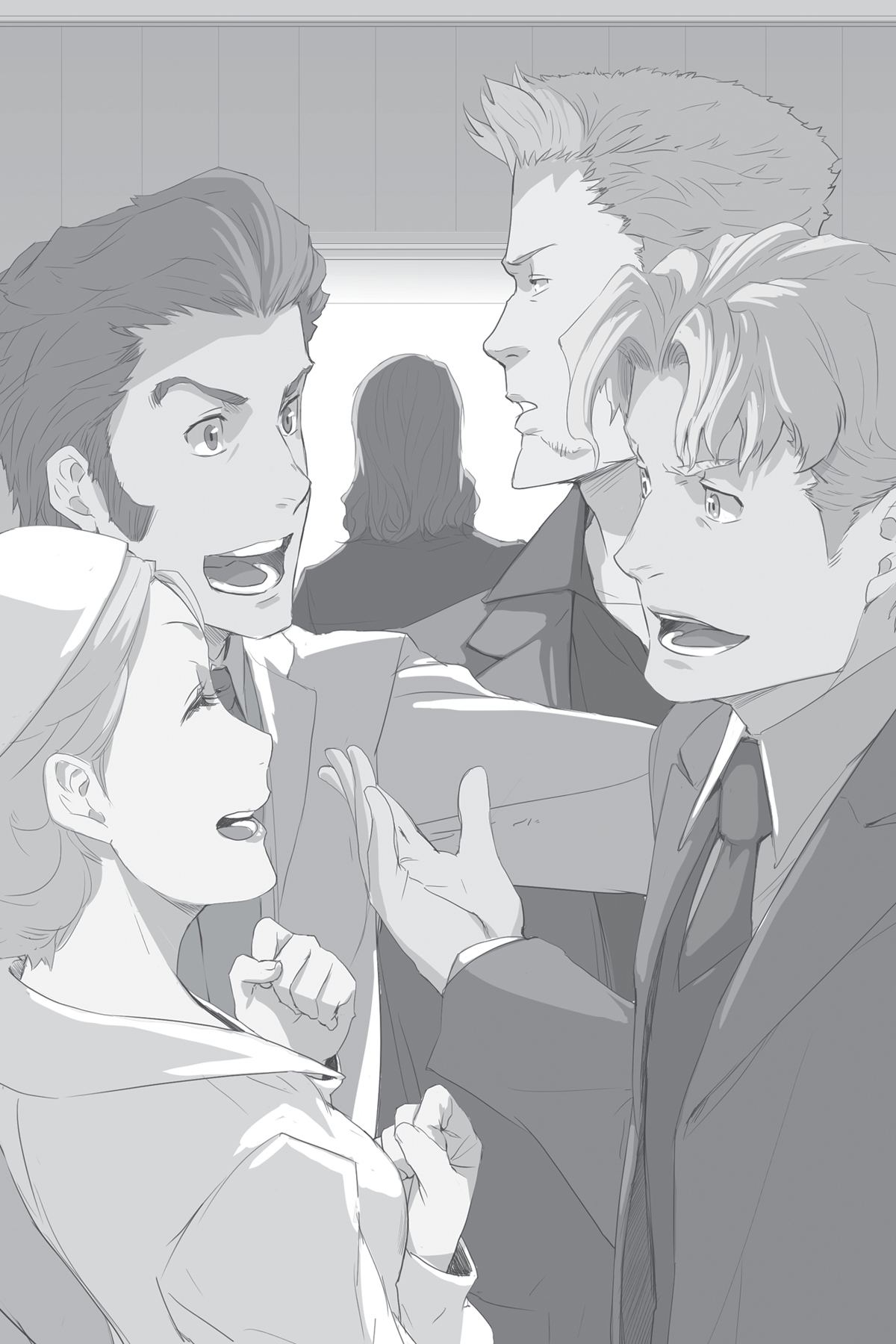The two head to the Martillo-owned Alveare since it is the closer of the two hideouts, planning to case the joint. They are still dressed in their formal attire (in the anime they are wearing their priest and nun outfits) when they enter the specialty honey shop, the proprietress of which shows them the back door leading to luxurious Martillo speakeasy. A waitress escorts them to a table in a corner, and Isaac asks her to bring them the speakeasy's cheapest liquor. Once she leaves, he whispers to Miria that they should look for the safe in the most inconspicuous manner possible. They proceed to conspicuously prowl the establishment.