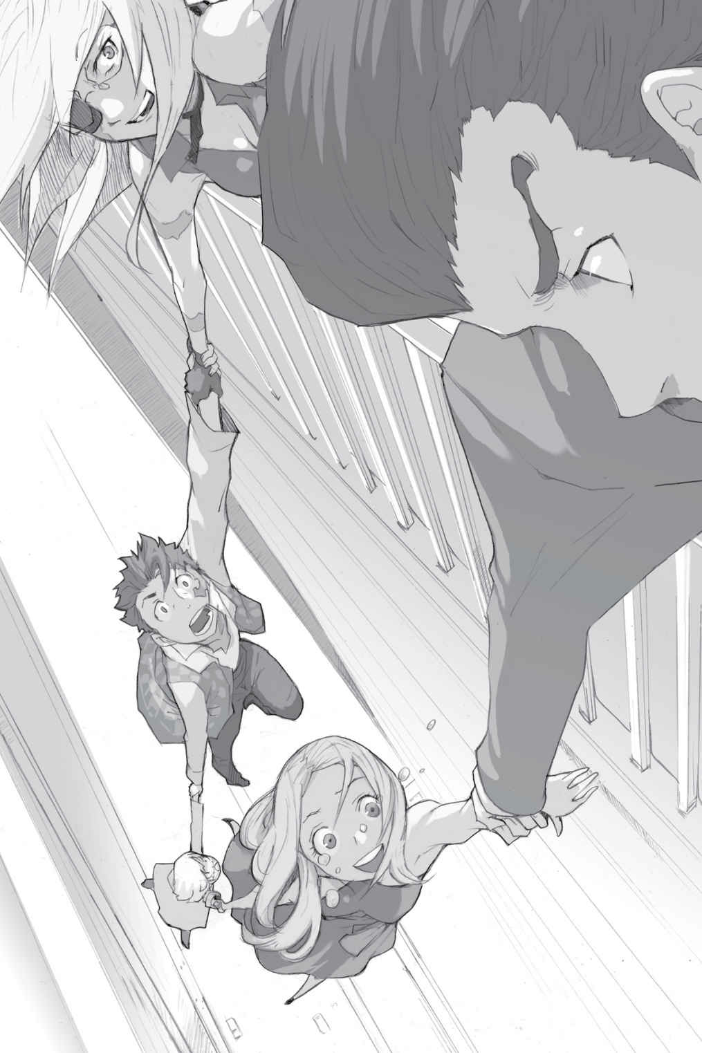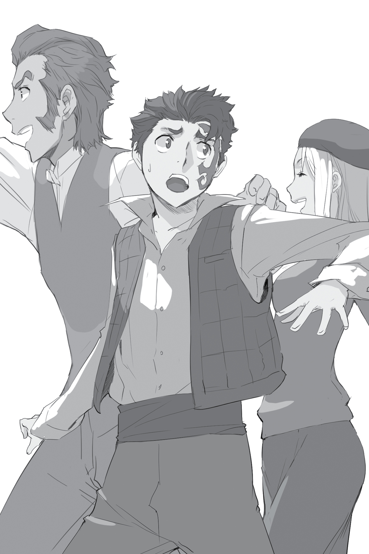 Clapping their arms around Jacuzzi, Isaac, and Miria drag him toward the front door and instruct him to cooperate. At Jacuzzi's question, Isaac explains that he and Miria know a restaurant owner named Molsa who just happens to be a member of the Martillos. All they have to do is ask Molsa to give Jacuzzi more time to repay his debt—for all they know, Molsa might even forgive the debt entirely. If he does, chances are he might be willing to give Isaac and Miria a job as well.
