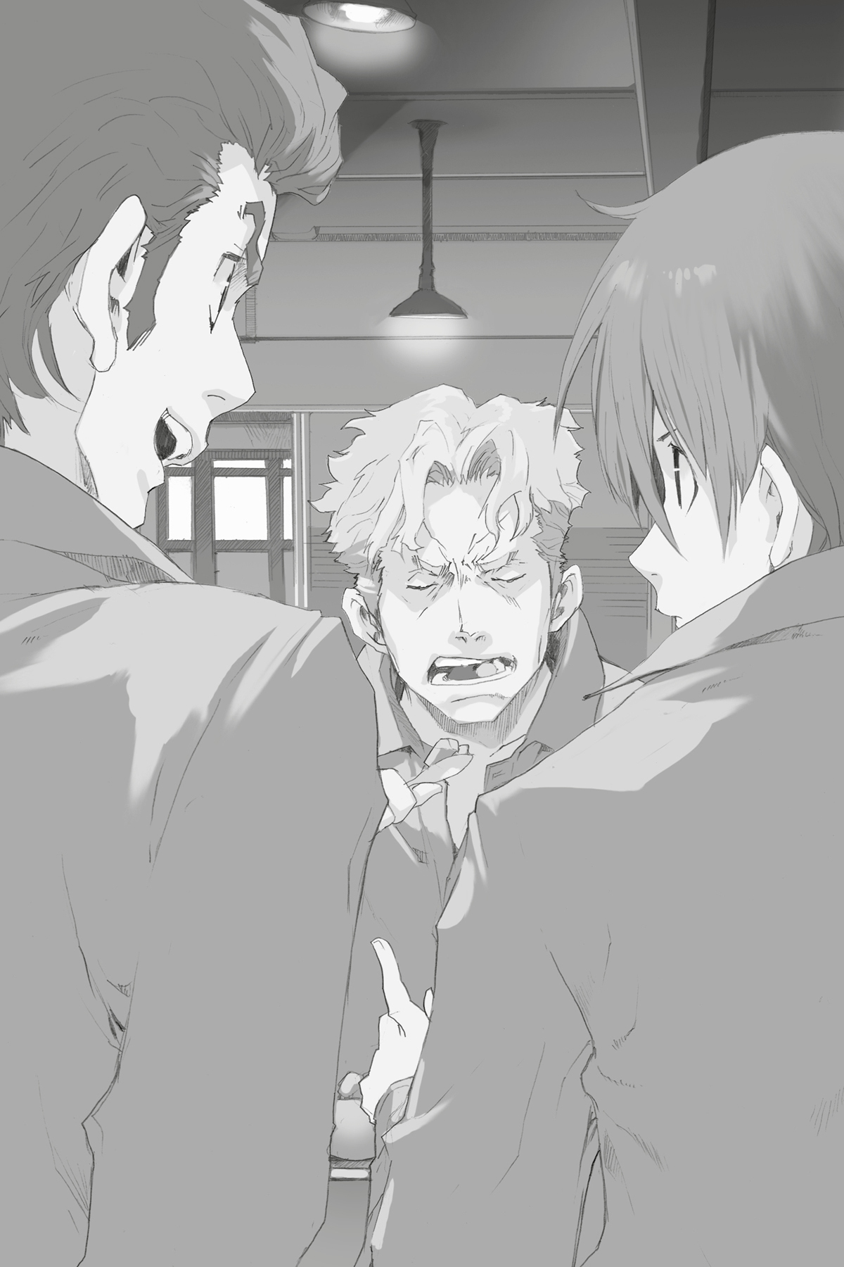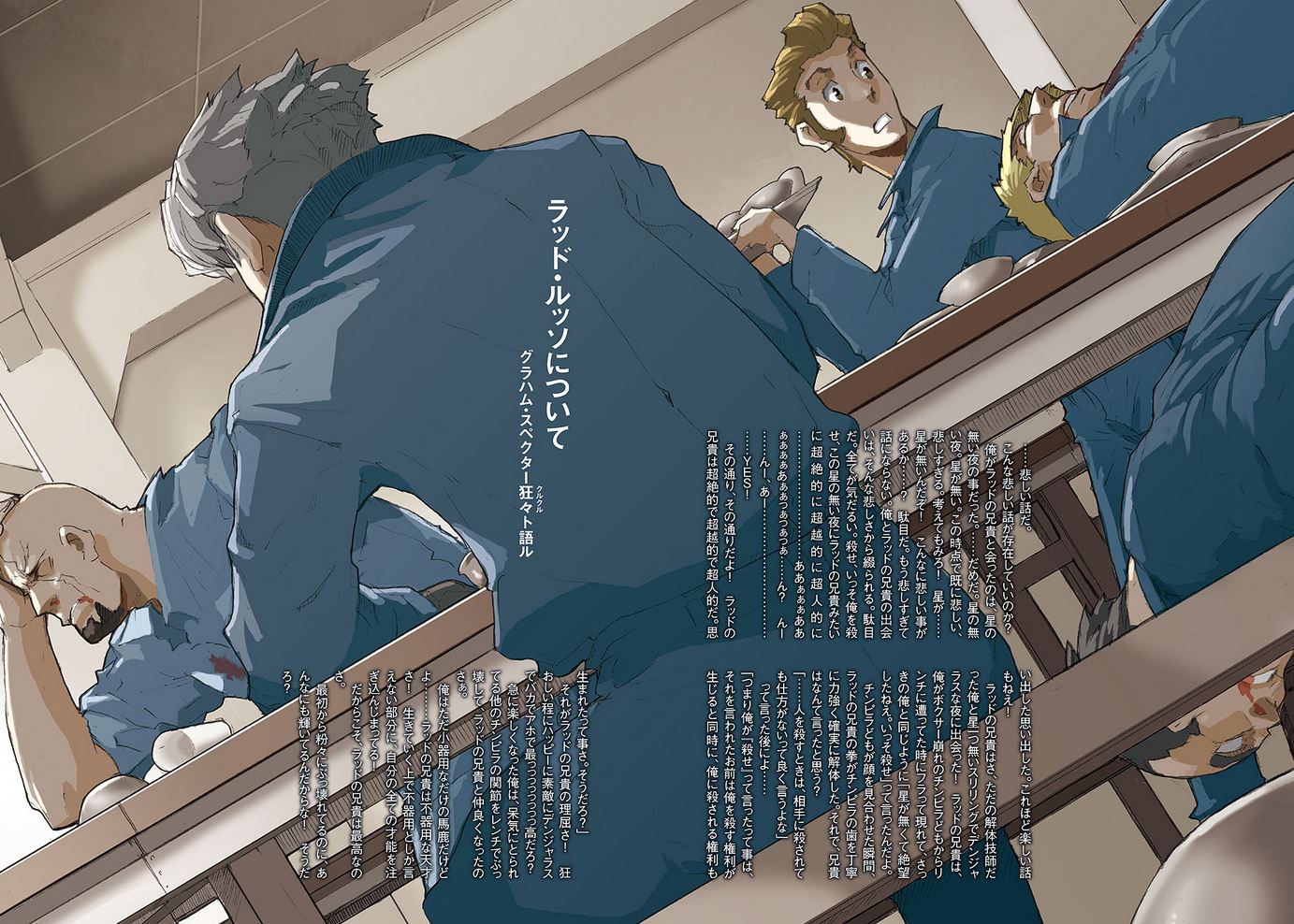 With the immediate threat absconded, Ladd catches up with Isaac; while he knew Isaac was friends with Firo, he never thought he would run into him when he came looking for Who. Isaac explains they only met Who yesterday, and Miria asks who Ladd is. Ladd realizes she must be the Miria Isaac told him so much about, and the three of them fall into amicable conversation. Lebreau tells Who that he will check on the patients and the back door in the meantime, as he does not want to be a fifth wheel to their reunion. Who warns him to be careful, and Lebreau glibly replies that he will "scream as loud as [he] can" should he see the men before disappearing down the hallway.