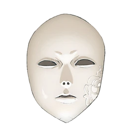 The Mask Makers of the twenty-first century wear the same mask of their founder, Monica: an expressionless white mask reminiscent of a Venetian carnival. The mask, described both as beautiful and strange, is plain save for a floral design on its left cheek.